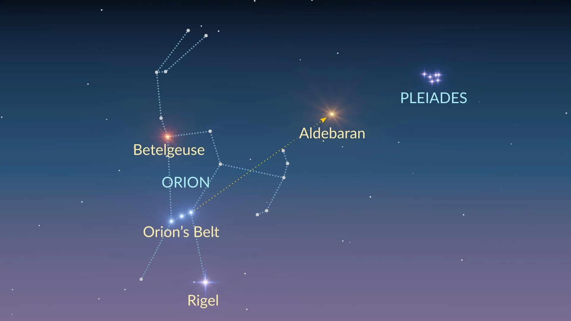 Una vez que hayas identificado a Orión, traza una línea imaginaria desde el cinturón de Orión (las Tres Marías) hacia arriba (en dirección noroeste). Esa línea te llevará directamente a Aldebarán, una estrella anaranjada y brillante que representa el ojo del toro.